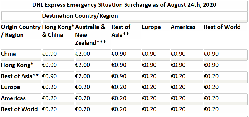 DHL: Temporary suspension of services is no longer effective for Guinea Bissau, but extended delivery times remain, and can be up to 10 additional business days for some countries of the Sub-Saharan region. There is an adjusted surcharge from 24 August:
