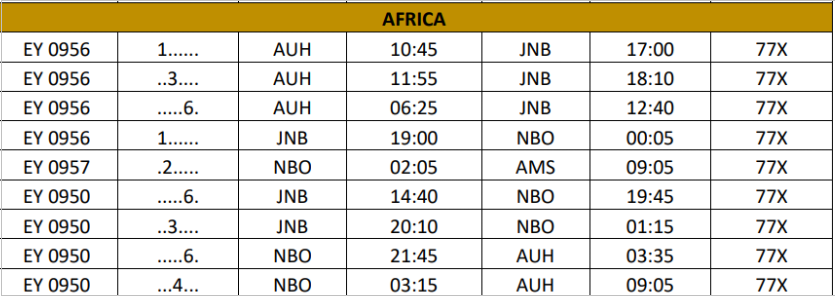 Etihad maintains its flights from South Africa and Kenya to Abu Dhabi.