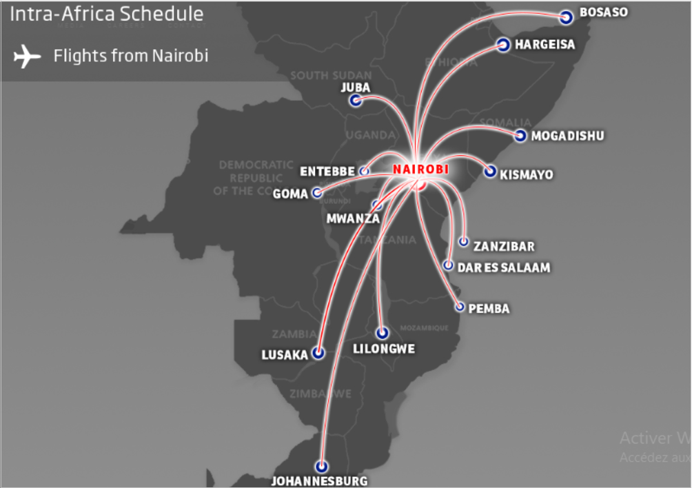 Air Uganda operates MD87 and CRJ aircraft with three daily flights to Nairobi, daily flights to Juba, six flights a week into Dar es Salaam, two flights a week via Mombasa to Zanzibar, and six flights a week to Kigali.